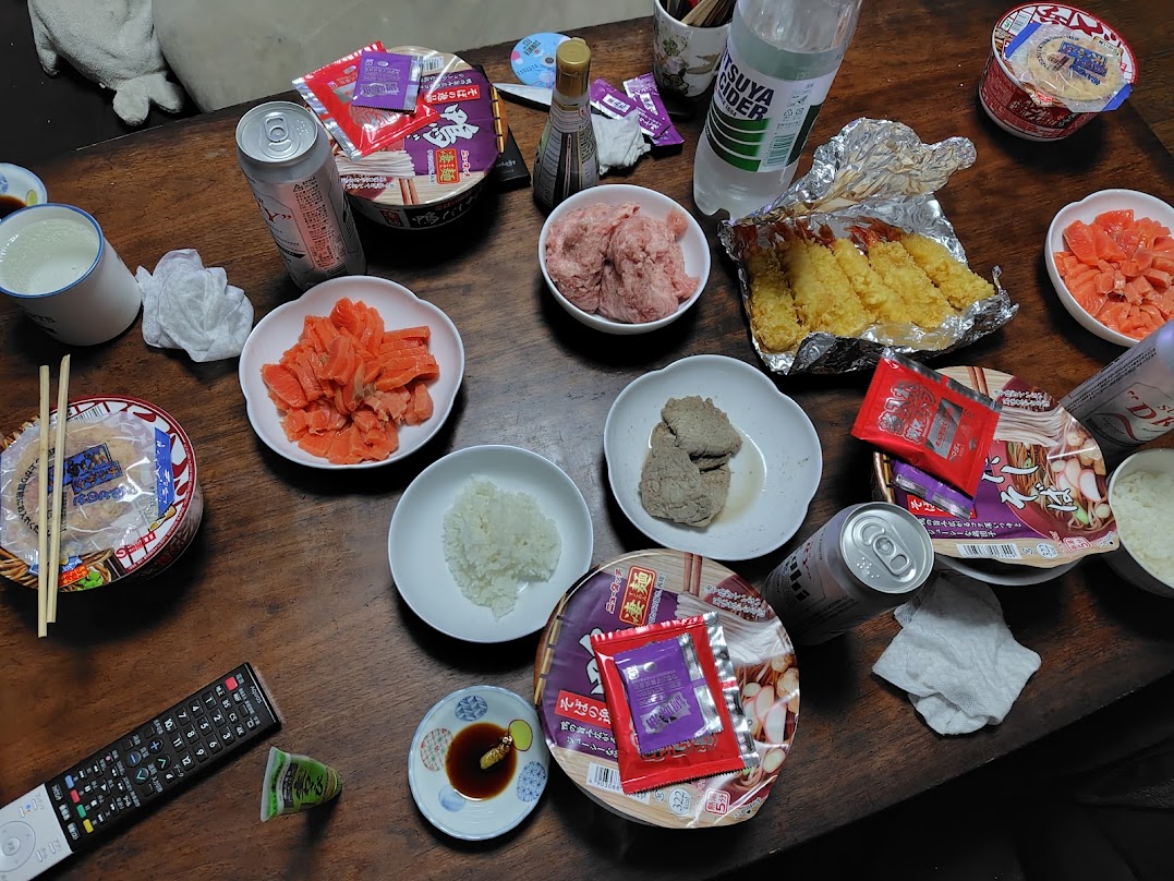 はい、さっぱりしたものが食べたいだろうと、まぐろのタタキのデカいのを購入したのですが、デカすぎましたw