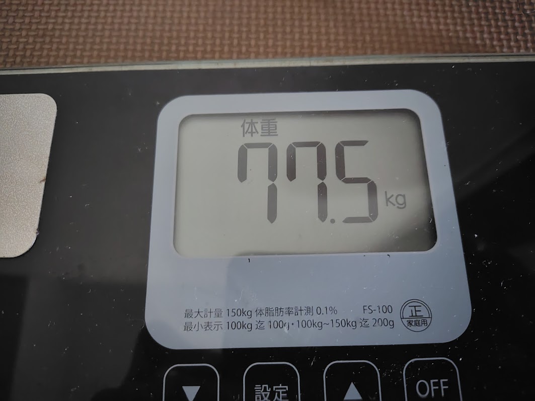 77.5kg…Σ( ̄ロ ̄lll)ガーン